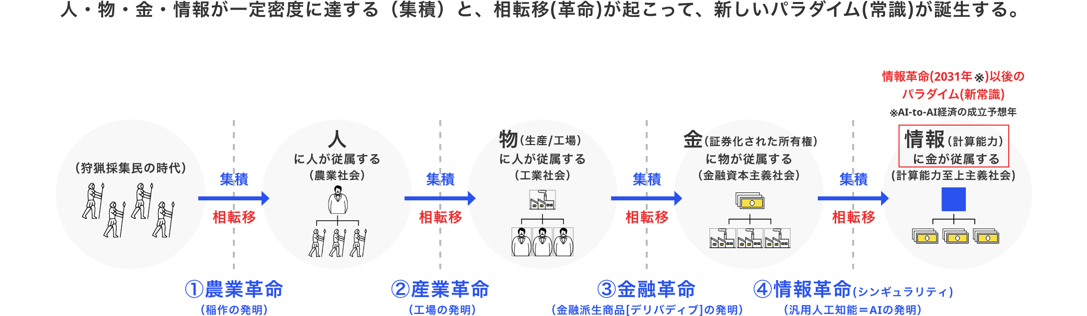 ④2031年【情報処理速度の集積と相転移】、これが”シンギュラリティ”であり、「金が情報処理に隷属する社会」です。